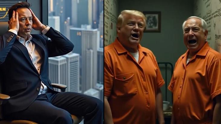 Videoda ayrıca Elon Musk’ın borsa kayıpları yaşadığı, Trump ve İsrail Başbakanı Benjamin Netanyahu’nun Filistin halkına karşı işledikleri suçlar nedeniyle hapis cezasına çarptırıldığı bir sahne de yer alıyor.